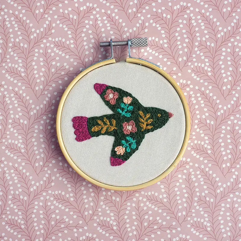 Un kit complet pour broder le motif Oiseau et créer un joli tableau ou personnaliser un vêtement ou un accessoire. Il comprend tout le nécessaire : un tambour de 10 cm de diamètre, des fils moulinés DMC, une aiguille et le motif imprimé sur un coton grège. Il ne reste plus qu’à se lancer !