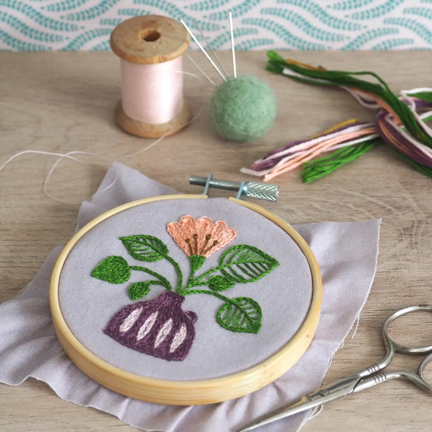Un kit complet pour broder le motif Vase et créer un joli tableau ou personnaliser un vêtement ou un accessoire. Il comprend tout le nécessaire : un tambour de 10 cm de diamètre, des fils moulinés DMC, une aiguille et le motif imprimé sur un coton parme. Il ne reste plus qu’à se lancer !